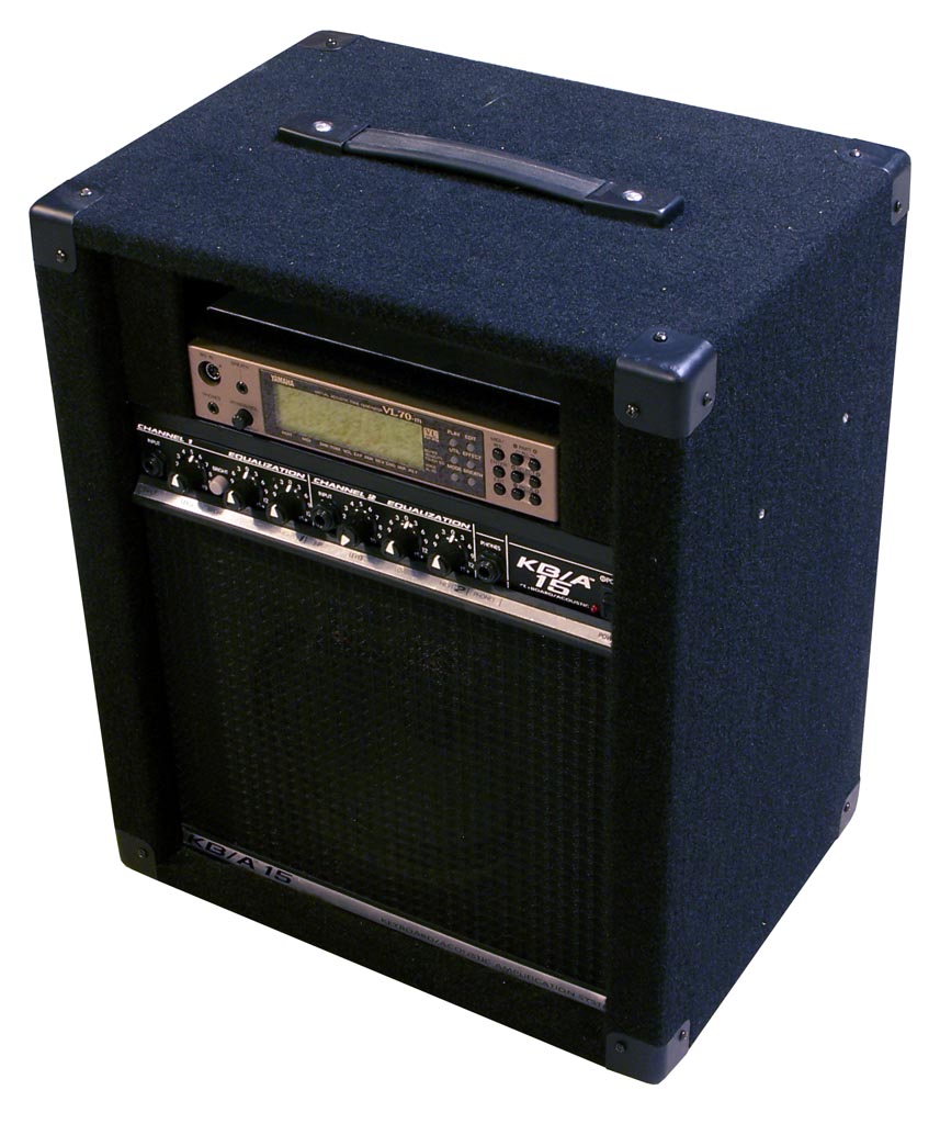 The Synth Amp project was a specific request from a client. We were asked to design and build a battery powered, lightweight single system to house a small amplifier, speaker, and two rack synthesizers. In other words, this is a small keyboard amp built into a custom case to include a gel-cell battery and two music synthesizers. This particular client is a wind synth (wind controller) player, using the rig for pit orchestra and street performances while playing the WX5 and VL70 music synthesizer. The second