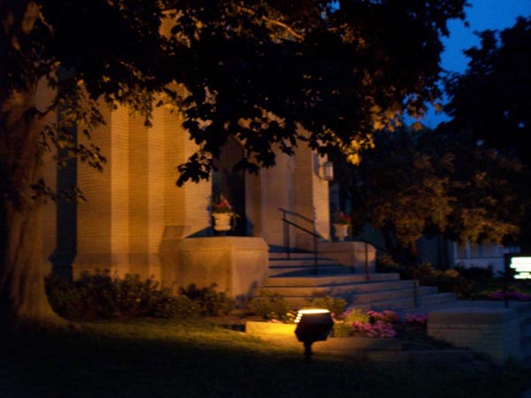 Our largest projects have been at Bethany Presbyterian Church in Rochester, NY for both interior and exterior lighting improvements. Interior designs included focused lights on the chancel, dimmers on the sanctuary lights, and improved balcony lighting. Exterior design work was to effectively light the front faade, replace service lights at the back entrance with energy efficient sodium fixtures, and a beautiful illuminated front sign.